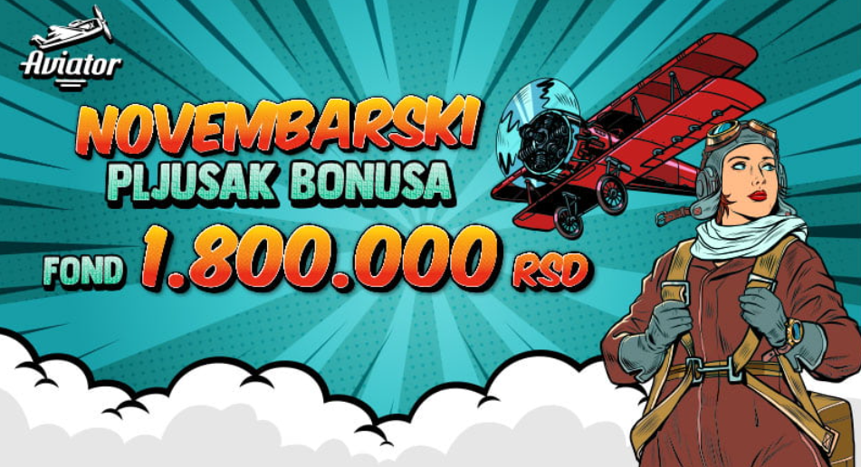 U novembru, igra Aviator donosi priliku za osvajanje bonusa svakog dana! Od 1. do 30. novembra, Mozzart organizuje uzbudljivu promociju gde će svakog dana bonusi padati na naloge čak 1.400 srećnih igrača.